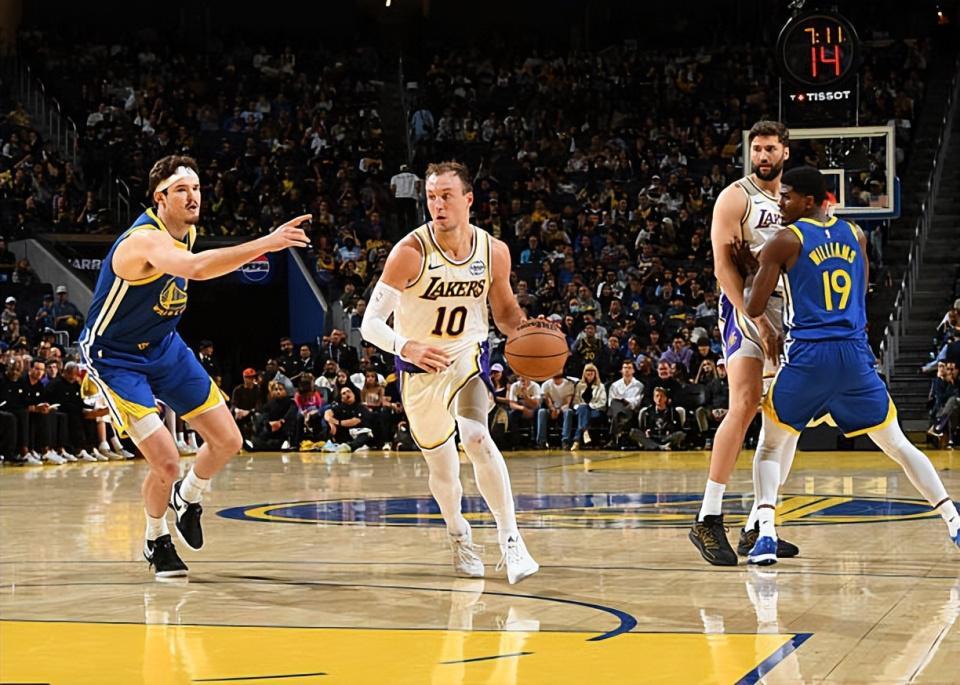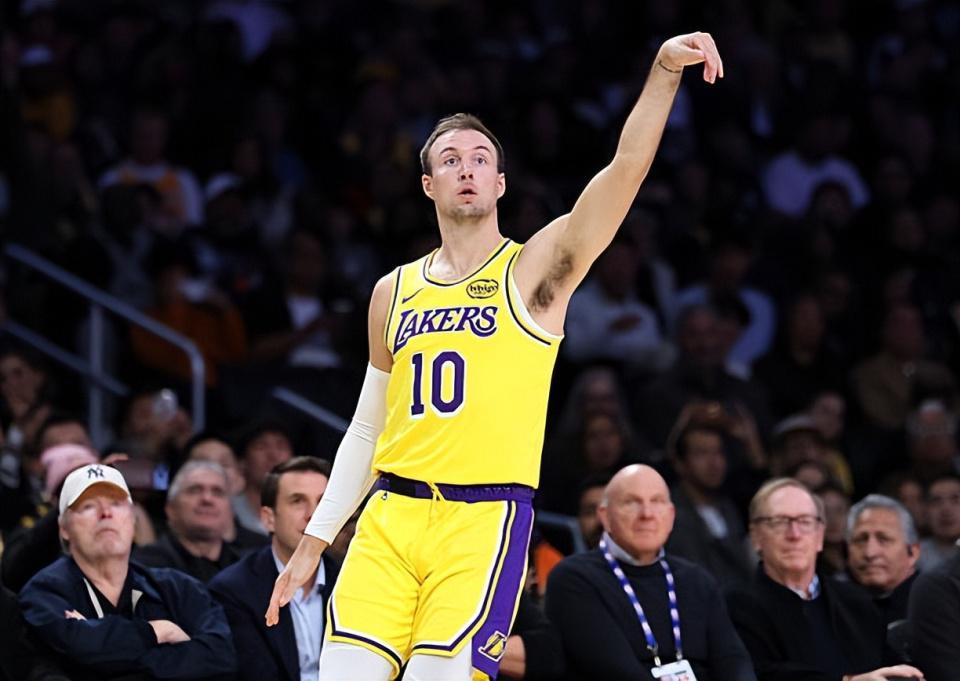 本场比赛中,刚刚在交易截止日前从亚特兰大老鹰加盟湖人的替补后场大将卢克-肯纳德(Luke Kennard)的表现还是相当不错的。肯纳德全场出场21分14秒,投篮5中3,三分线外3中2,罚球1中1,得到了9分2篮板1助攻的数据,还有2次失误和2次犯规,正负值更是达到了全场最高的+16。肯纳德在本场比赛中也是又一次将自己在外线投篮方面的特点发挥了出来,他在进攻端的效果相当不错,他也是又一次在出手次数不多的情况下得到了一些分数。肯纳德的防守能力当然是比较一般的,但从本场比赛的情况来看,他的防守能力似乎也并没有那么糟糕。肯纳德在场上时球队的局面相当不错,这也能够体现在他超高的正负值上,这也说明了他确实是能够在球队第二阵容中起到关键的作用。